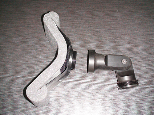 1. 將叩擊接合器(彎狀的連結(jié)裝置)的一端旋進纜線裝配頭的面板,另一端旋入叩擊頭,將接好的叩擊頭放在主機邊的支架上。